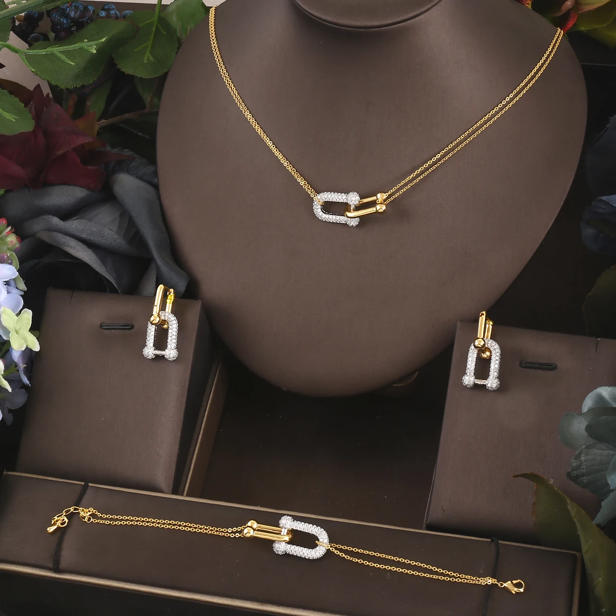 ACCKINGTrendy Fashion3PCS مجموعات المجوهرات الهندية الفاخرة Waterdrop للنساء حفل زفاف الهندي دبي مجموعة مجوهرات الزفاف