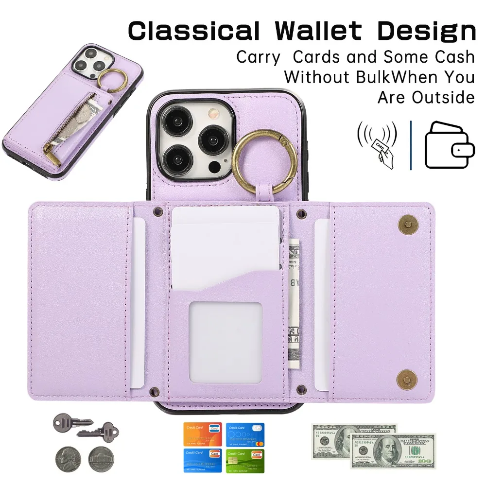 جراب هاتف أيفون 16 بسوستة متقاطعة مع الجسم بمحفظة حلقة حامل لهاتف أيفون 16 15 برو ماكس 14 بلس جلد مع غطاء حامل البطاقة